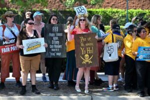 தொழிலாளர்கள் ஏப்ரல் 24 அன்று பொழுதுபோக்கு நிறுவனத்துடன் ஒப்பந்தப் பேச்சுவார்த்தைகளில் ஈடுபட்டனர். கிட்டத்தட்ட இரண்டு மாதங்களுக்குப் பிறகு, ஜூன் 10 அன்று, டிஸ்னி தொழிலாளர்கள் நிறுவனத்திற்கு எதிராக நியாயமற்ற தொழிலாளர் நடைமுறைக் குற்றச்சாட்டுகளைப் பதிவு செய்ததாக அறிவித்தனர்.675 க்கும் மேற்பட்ட தொழிலாளர்கள் தொடர்பான குற்றச்சாட்டுகள், தொழிலாளர் சட்டத்தை அமல்படுத்தும் ஒரு சுயாதீன கூட்டாட்சி நிறுவனமான தேசிய தொழிலாளர் உறவுகள் வாரியத்தால் இப்போது விசாரிக்கப்படுகின்றன.