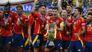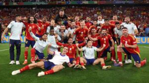 இருப்பினும், இப்போது, அதன் ஆண்கள் அணி நாட்டின் பெண்களின் வெற்றிக்கு ஒரு பெருமை சேர்க்கிறது. பெர்லினில் இருந்த பிரதம மந்திரி பெட்ரோ சான்செஸ், “ஸ்பானிய விளையாட்டுக்கு இன்று ஒரு சிறந்த நாள்” என்று கூறினார், ஸ்பெயின் மன்னர் ஃபிலிப்பே VI மற்றும் அவரது இளைய மகள் இளவரசி சோபியா ஆகியோரை பார்த்துக் கொண்டிருந்தார். சில மணிநேரங்களுக்கு முன்பு, கார்லோஸ் அல்கராஸ் தனது இரண்டாவது விம்பிள்டன் கோப்பையை வென்றார்.