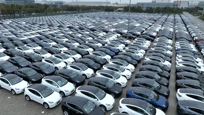 டெஸ்லா நிறுவனம் தயாரிப்பு வரியை ஐரோப்பா சற்று குறைத்துள்ளது துறைமுகத்தில் ஏற்றுமதிக்கான மின்சார வாகனங்கள் நிறுத்தப்பட்டுள்ளன